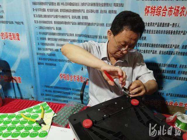 据介绍,电子秤检测校准分四个步骤。第一步是进行标定,即利用标准砝码进行校准,第二步是进行检定,第三步是铅封,第四步是发放检定合格证书。由于怀特综合市场需检测校准的电子秤较多,河北省计量院工作人员将集中利用几天的时间进行免费检定。